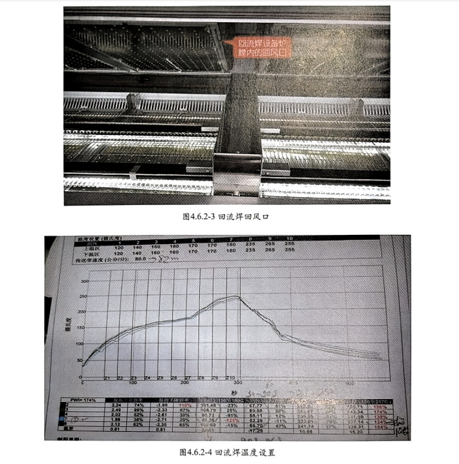 熱電偶實(shí)時(shí)感測熱風(fēng)溫度并將實(shí)際值反饋給主控電腦,主控電腦控制電源,加大或縮小加熱絲功率,以此獲得設(shè)定的熱風(fēng)溫度。如設(shè)定值為180℃,熱電偶與主控電腦配合形成閉環(huán),控制吹到爐膛內(nèi)的風(fēng)溫度為180+1℃。從這里我們 可以看到,每個(gè)加熱區(qū)包含上下兩組 Blower&Heater, 加熱絲溫度是獨(dú)立控制的。10區(qū)的爐子意味著有10對(duì) Blower&Heater, 也就是20組 Blower&Heater。行業(yè)通用說法,回流爐溫區(qū)數(shù)量不包含冷卻區(qū)。一臺(tái)回流焊設(shè)備, 10對(duì)加熱區(qū),4個(gè)冷卻區(qū),稱謂10區(qū)的爐子,“13區(qū)的爐子”意味著有13對(duì)加熱區(qū),而不是10對(duì)加熱區(qū)和3 個(gè)冷卻區(qū)。回流爐軌道位于每對(duì)加熱區(qū)的中間,當(dāng)板子帶著元件、錫膏經(jīng)過時(shí),上下熱風(fēng)吹到板面進(jìn)行熱交換加 熱,經(jīng)過熱交換的熱風(fēng)溫度降低,通過回風(fēng)口回收后再次被Blower 送到加熱絲加熱到設(shè)定溫度,吹入爐膛繼續(xù) 做工,圖4.6.2-3回流焊回風(fēng)口。如此反復(fù)持續(xù)不斷的工作,就是我們?nèi)粘R姷交亓骱附釉O(shè)備。圖4.6.2-4回流 焊溫度設(shè)置,顯示了典型的無鉛SAC305 焊錫常用的溫度設(shè)置及實(shí)際測試所得溫度曲線。